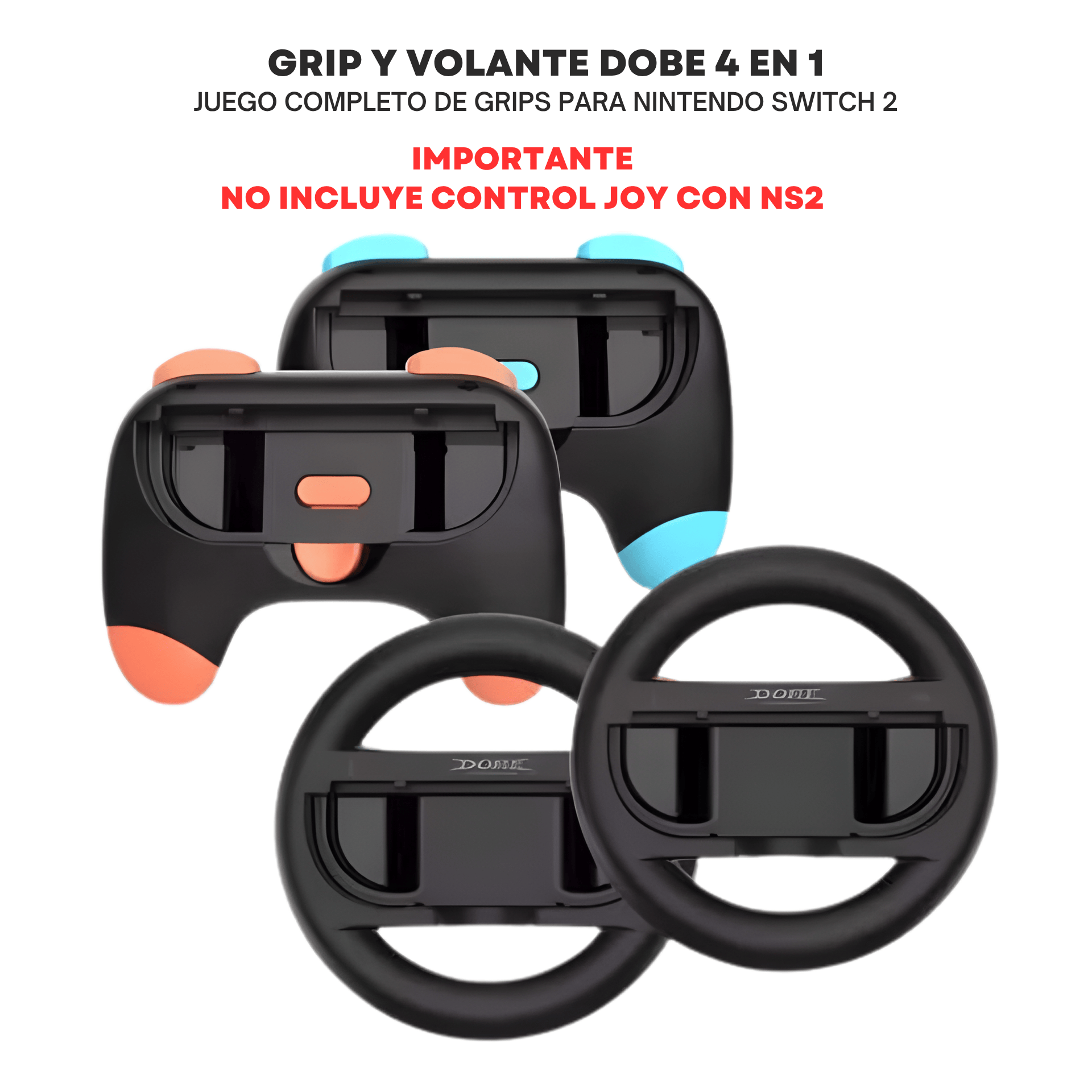 - Kit completo 4-en-1: contiene volante, agarres y soporte diseñados para Nintendo Switch 2.