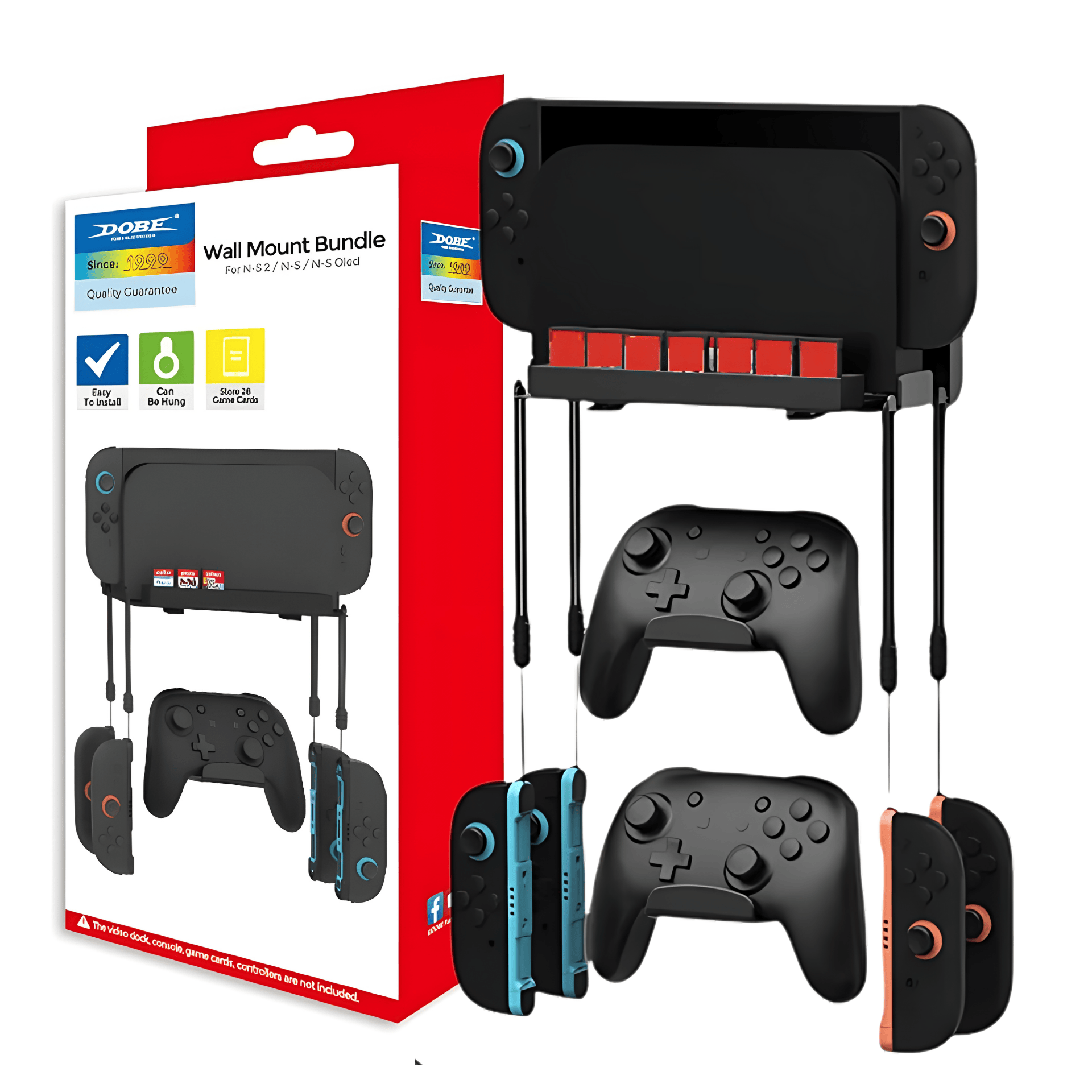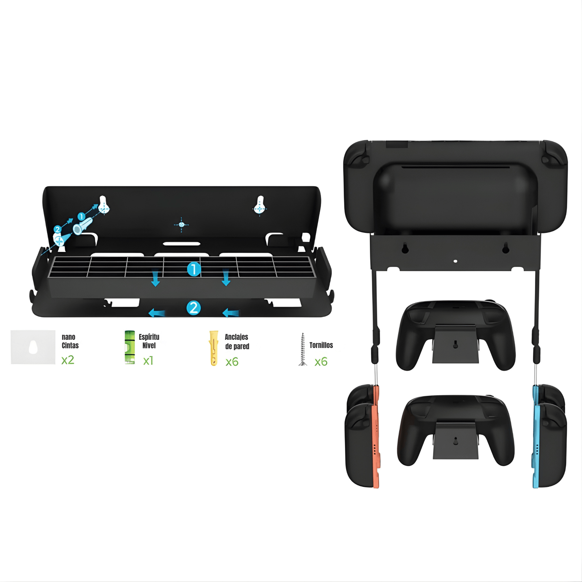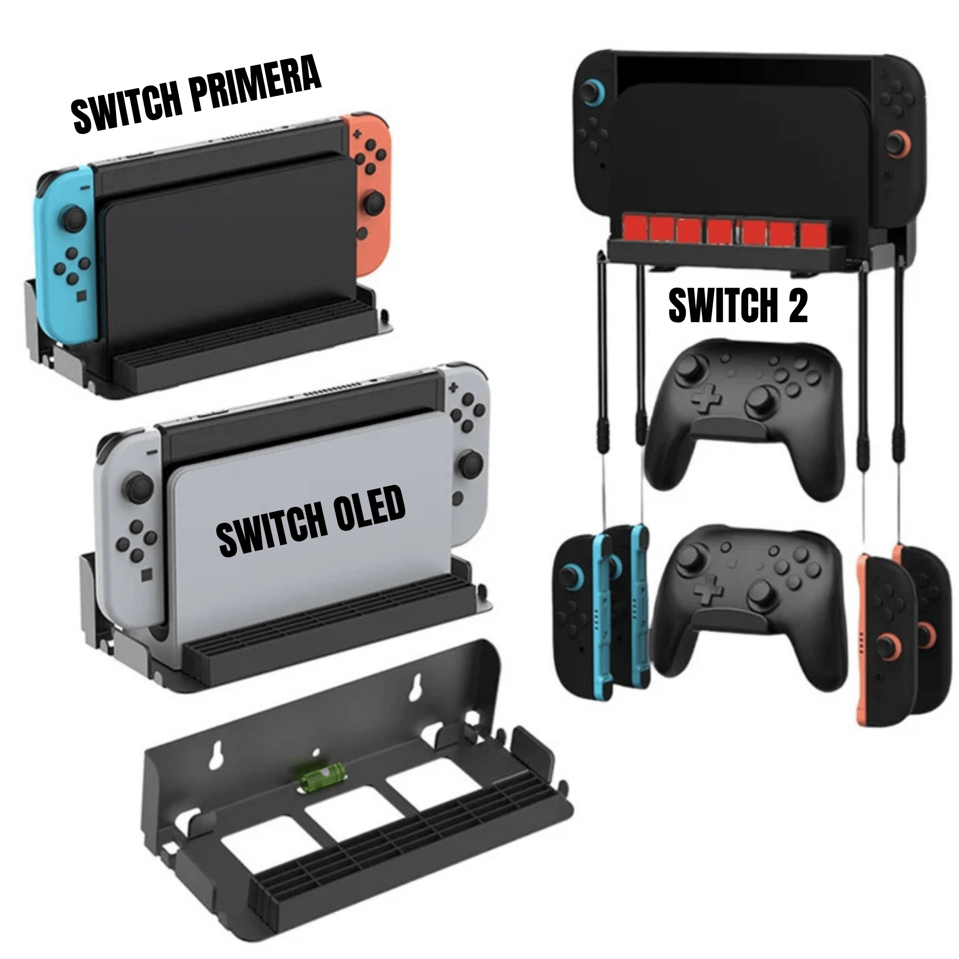- Compatibilidad universal para consolas Nintendo Switch, Switch OLED y Switch 2; montaje seguro en pared.